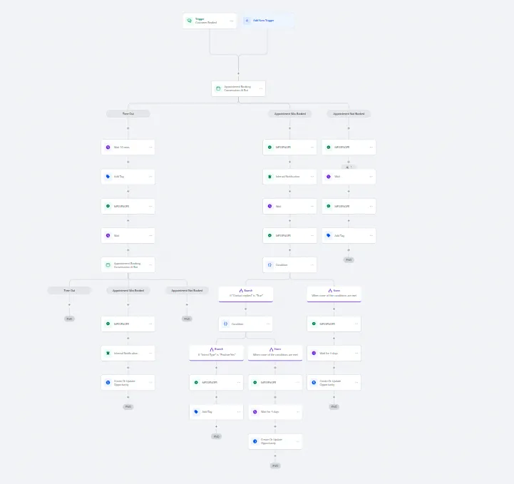 An automated Messenger workflow that confirms appointments, sends reminders, and responds based on client actions. This system keeps conversations active inside Messenger while reducing no-shows and manual follow-ups.